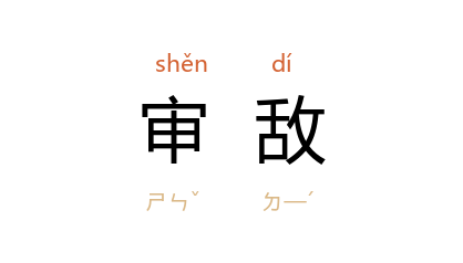 ⒈ 审察敌情。宋苏洵有《审敌》篇。