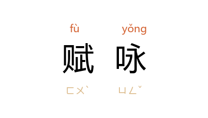引《南史·何点传》:“清言赋咏,优游自得。”宋 张淏 《云谷杂记·二赤松子》:“而往来赋咏者多引用 张子房 事,误矣。”明 李东阳 《明故刑部郎中奚君墓志铭》:“为诗文往往有奇思,与客赋咏,值意得,恒夜分不寝。”