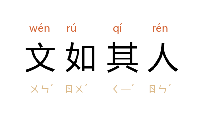 ⒈ 形容某人的文章的风格与其人的品性、脾气类似。