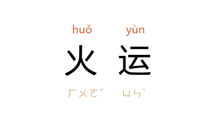 引南朝 梁 沉约 《梁鼓吹曲·木纪谢》:“木纪谢,火运昌,炳南陆,耀炎光。”《陈书·高祖纪下》:“梁氏 将末,频月亢阳,火运斯终,秋霖奄降。”宋 王谠 《唐语林·补遗一》:“唐 承 隋 代火运,故为土德。”