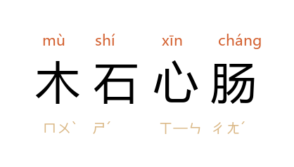 ⒈ 像木石一般的心肠。比喻心肠冷硬无情。