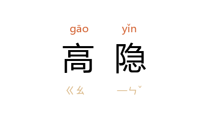 引唐 皮日休 《通玄子栖宾亭记》:“古者有高隐殊逸,未被爵命,敬之者以其德业,号而称之,玄德玄晏是也。”明 范汭 《琴川夜泊怀孙齐之》诗:“残梦风前柝,归心曙后鸡,还知高隐处,只隔水东西。”清 龚自珍 《自春徂秋得十五首》之八:“弱龄羡高隐,端居媚幽独。”