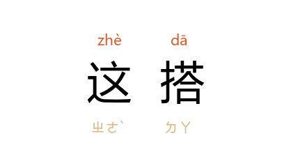 引元 李好古 《张生煮海》第二折:“道姑,敢问这搭儿是何处也?”元 马致远 《荐福碑》第二折:“你是必兴心儿再认下这搭沙和草,哥也你可休不挂意揩抹了这把带血刀。”马可 《夫妻识字》:“哎--看把你兴的!你眼窝长在那里了,你没看见,人家在这搭学习哩!”肖亦农 《红橄榄》四:“你把 老明 大爷扶到我这搭来。”