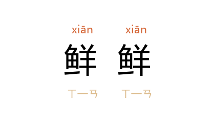 引唐 韩愈 《秋怀诗》之十一:“鲜鲜霜中菊,既晚何用好。”钱仲联 集释引《方言》:“鲜,好也。”宋 王安石 《酬裴如晦》诗:“鲜鲜细菊霜前蕊,漠漠疏桐日下阴。”《清平山堂话本·西湖三塔记》:“盈盈嫩緑,有如剪就薄薄轻罗;裊裊轻红,不若裁成鲜鲜丽绵。”《再生缘》第三一回:“冶鲜鲜,玉裹金围富贵妆。”
