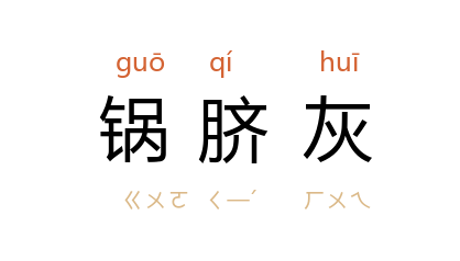 引《西游记》第六九回:“贤弟莫讲,你拿这个盏儿,将锅脐灰刮半盏过来。”《金瓶梅词话》第三三回:“只怕还有些餘血未尽,筛酒吃些锅脐灰儿就好了。”