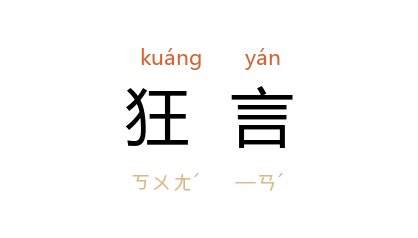 ⒈ 夸大放肆的言辞。也作「狂话」、「狂语」。