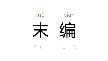 ⒈ 指书的最后一编。编,编次。 鲁迅 有《且介亭杂文末编》。
