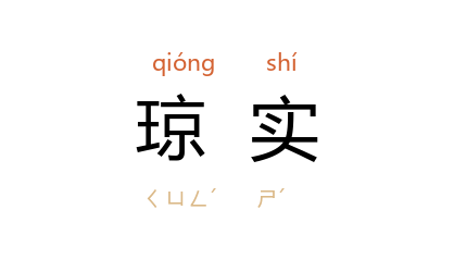 引南朝 梁 沉约 《绣像赞》:“水耀金沙,树罗琼实。”隋 卢思道 《神仙篇》:“玉英持作寳,琼实採成蹊。”《法苑珠林》卷四一:“牀头各有十侍婢。勑云:刘 阮 二郎,经涉山岨,向虽得琼实,犹尚虚弊,可速作食。”