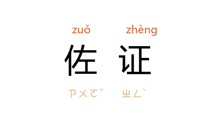 ⒈ 证明、证实。也作「左证」。