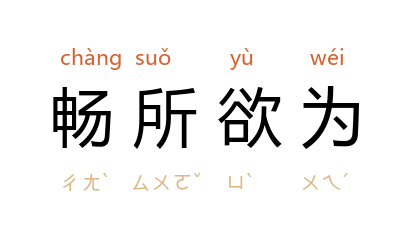引清 李渔 《奈何天·总评》:“使之生於贵族,早歷宦途,畅所欲为,更不知作何竖立。”陶成章 《浙案纪略·秋瑾传》:“郡守 贵福 并赠 瑾 对联一,联曰:‘竞争世界,雄冠地球。’ 瑾 於是益得畅所欲为。”