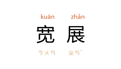 ⒈ 宽阔,宽大舒展。 《儒林外史》第十四回:“山门傍边一个小门。