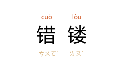 引汉 王符 《潜夫论·浮侈》:“石山隐饰,金银错鏤,穷极丽靡。”《太平御览》卷七五六引 汉 服虔 《通俗文》:“金银鏤饰器谓之错鏤。”《梁书·刘之璘传》:“金银错鏤古樽二枚,有篆铭云:‘ 秦 容成侯,适 楚 之岁造。’”宋 王安石 《江邻几邀观三馆书画》诗:“黄金错鏤为投壶,粉幛復画一病夫。”