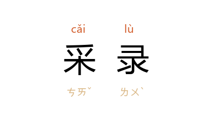 例如:「他到非洲采录当地土人的歌谣。」