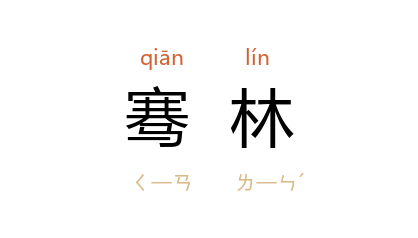 引《云笈七籤》卷二三:“﹝月暉之圜﹞有七寳浴池,八騫之林……比十七日至二十九日,於騫林树下,採三气之华,拂日月之光也。”清 钮琇 《觚賸·景龙观钟铭》:“曾城写质,閬苑图形,但名在騫林,而韵停霜虡。”