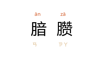 引元 王伯成 《哨遍·赠长春宫雪庵学士》套曲:“明图甚,形骸傴僂,涕唾腤臢。”明 张景 《飞丸记·独诉幽怀》:“出塞鸿,从天下鸟笼,腤臢受尽,受尽情难控。”