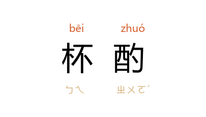 ⒈ 杯中的酒。指酒。也作「杯酌」、「觞酌」。