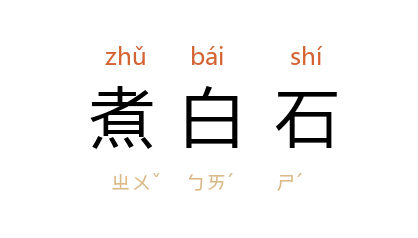引晋 葛洪 《神仙传·白石先生》:“﹝ 白石先生 ﹞常煮白石为粮,因就白石山居。”唐 韦应物 《寄全椒山中道士》诗:“涧底束荆薪,归来煮白石。”亦省作“煮石”。 南朝 梁 庾肩吾 《东宫玉帐山铭》:“煮石初烂,烧丹欲成。”元 方回 《次韵赠道士汪庭芝》:“中野履霜寧怨命,通宵煮石且随缘。”