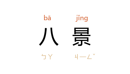 ⒈ 八个胜景。后来名胜地多称其景物为八景。