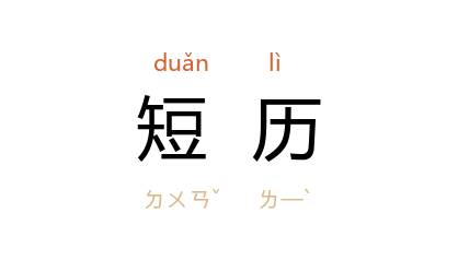 ⒈ 见“短历”。亦作“短歷”。短寿;短命。