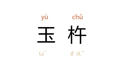 ⒊ 传说月中有白兔持杵捣药,因以玉杵指月亮。