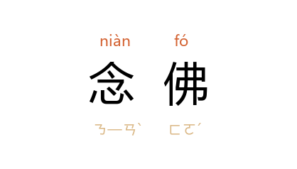 ⒈ 佛教修行方法的一类,约分称名念佛、观想念佛与实相念佛三种。一般指前一种,即口诵“阿弥陀佛”或“南无(nāmó)阿弥陀佛”。