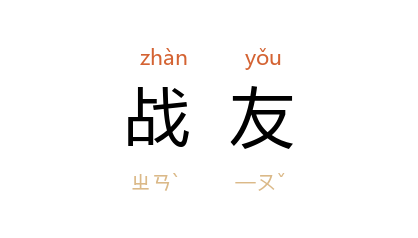 引杜鹏程 《在和平的日子里》第一章:“梁建 想去跟 阎兴 这位多年生死患难的战友聊聊。”孙犁 《澹定集·<曼晴诗选>序》:“曼晴 和我,可以说是老战友了吧。”