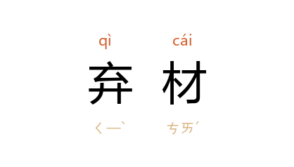 引三国 魏 曹植 《当欲游南山行》:“大匠无弃材,船车用不均。”晋 葛洪 《抱朴子·务正》:“役其所长,则事无废功;避其所短,则世无弃材矣。”明 高启 《何隐君小墅》诗:“壁间田器掛,窗里浦帆来。自恋幽居乐,谁言是弃材。”