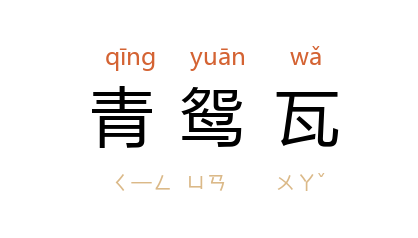 引唐 元稹 《茅舍》诗:“旗亭红粉泥,佛庙青鸳瓦。”亦省称“青鸳”。 《初学记》卷二三引《大藏经》:“须弥山 下有青鸳伽蓝。”宋 陆游 《雪中作》诗:“明朝日暖君须记,更看青鸳玉半沟。”《饮冰室诗话》一〇七引 蛰厂 《崇效寺看花》诗:“被栏碧叶如相语,辞世青鸳不可寻。”
