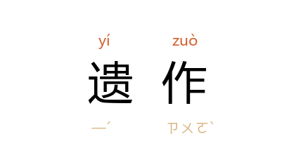 引巴金 《纪念雪峰》:“前些时候刊物上发表了 雪峰 的遗作。”冯牧 《<郭小川诗选>序》:“上面谈到的一些,只不过是我作为一个读者和战友在重读他的遗作后的一些粗略的感受。”