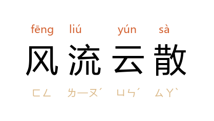 亦作“风流雨散”。 晋 左思 《蜀都赋》:“饮御酣,宾旅旋,车马雷骇,轰轰闐闐,若风流雨散,漫乎数百里之閒。”