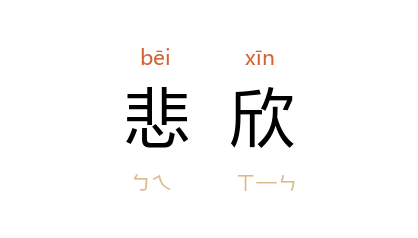 引晋 卢谌 《答魏子悌》诗:“乖离令我感,悲欣使情惕。”唐 谷神子 《博异志·崔无隐》:“父母艘悲忻泣不胜。”宋 朱弁 《曲洧旧闻》卷十:“追怀今昔,倍剧悲欣。”宋 叶适 《与英上人游紫霄殿戏述短歌》:“等为造化役,未究悲忻情。”