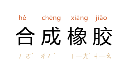 ⒈ 具弹性的高分子化合物。呈橡皮状,由石油、天然气、煤等原料制成。种类很多,可用来代替天然橡胶。