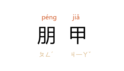 引南唐 刘崇远 《金华子杂编》卷上:“先是,中朝流品相率为朋甲,以名德清重之最者为其首。”宋 董逌 《广川画跋·书举子图后》:“此殆昔朋甲图也。 唐 之士子,中世最盛;各立朋甲,相为敌国。”
