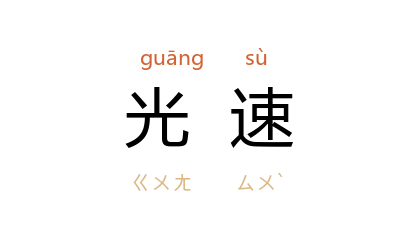⒈ 光波行进的速度。在真空中每秒约三十万公里。