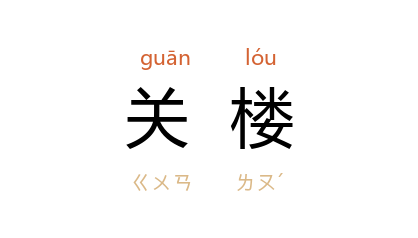 引唐 岑参 《五月四日送王少府归华阴》诗:“仙掌 分明引马头,西看一点是关楼。”《资治通鉴·汉光武帝建武九年》:“横 江 水起浮桥、关楼,立欑柱以絶水道。”胡三省 注:“‘关楼’ 范 《书》作‘鬭楼’,犹今城上敌楼也。”阿英 《津平日记选》:“上至关楼,屋似系民 国所 建,已颓圮。”