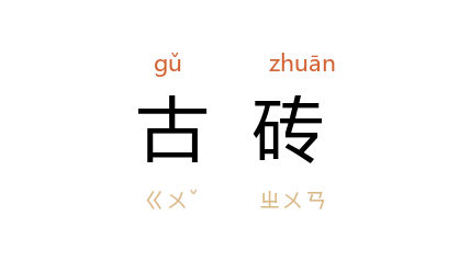 ⒈ 古代建筑物的遗砖。常由发掘而得。其上多有年款、图案花纹,或吉祥语等,于考古、美术、书法皆有重要价值。砖,同“砖”。