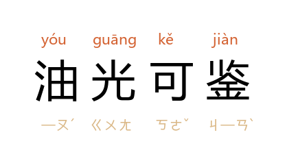 引鲁迅 《朝花夕拾·藤野先生》:“也有解散辫子,盘得平的,除下帽来,油光可鉴,宛如小姑娘的发髻一般,还要将脖子扭几扭。”吴组缃 《山洪》五:“他年近三十岁,留着‘西洋装’的头,梳的蓬蓬的,油光可鉴。”