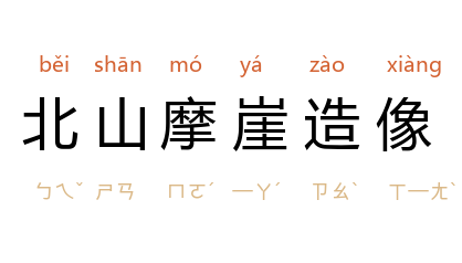 ⒈ 在重庆市大足县西北北山上。以佛湾为中心,包括观音坡、佛耳峰、营盘山,长500米。始建于晚唐,盛于两宋。共二百九十窟龛,造像近万躯。还有碑碣《古文孝经》石刻,是世界仅存的古本。为全国重点文物保护单位。