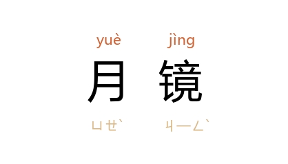 引晋 王嘉 《拾遗记·周灵王》:“时异方贡玉人、石镜,此石色白如月,照面如雪,谓之‘月镜’。”唐 李峤 《八月奉教作》诗:“月镜如开匣,云缨似缀冠。”唐 皇甫湜 《出世篇》诗:“西摩月镜,东弄日珠。”
