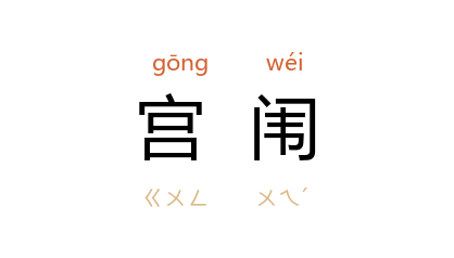 ⒊ 官名。 隋 唐 内侍省有宫闱局令,掌管宫内的法纪、制度,出入管钥。见《通典·职官九》、《新唐书·百官志二》。