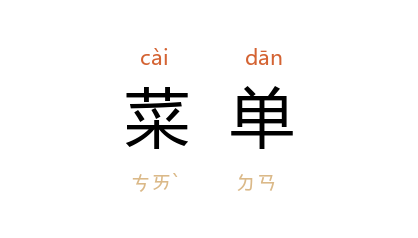 ⒈ 可以接受定购的(如在饭馆中)或专门准备上桌的(如在宴会上)已经印好或写好各种菜名的单子。也叫“菜谱”