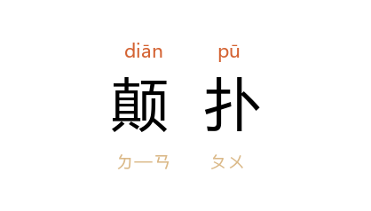 引宋 梅尧臣 《李审言相招与刁景纯周仲章裴如晦冯当世沉文通谢师厚师直会开宝塔院》诗:“敢忘主人勤,颠扑困驭者。”清 袁枚 《新齐谐·蜈蚣吐丹》:“少顷,水如沸汤,热气上冲。蛇在水中,颠扑不已,未几死矣,横浮水面。”艾青 《马赛》诗:“看城市的街道摆荡着,货车也像醉汉一样颠扑。”
