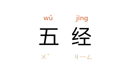 引汉 班固 《白虎通·五经》:“五经何谓?谓《易》、《尚书》、《诗》、《礼》、《春秋》也。”