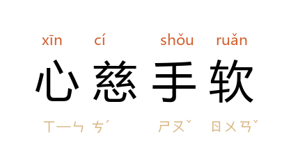 引金近 《他叫“东郭先生”》:“他下定决心,往后不再心慈手软了。”《人民日报》1976.11.4:“在这场斗争中,我们决不能心慈手软。”