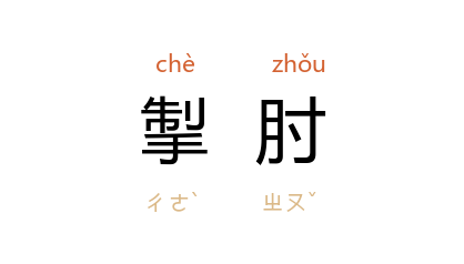 英语(lit.) to hold sb by the elbow, (fig.) to hold back, to impede, to handicap