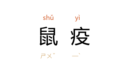 ⒈ 病名。一种死亡率很高的急性细菌性传染病。常由老鼠身上的跳蚤传入人体。依症状不同可分为三种:一、腺鼠疫:头疼、发高烧、淋巴结肿胀,有时溃澜。二、肺鼠疫:咳嗽、吐暗红色的痰。三、败血型鼠疫:呕吐、谵妄、昏迷、体温不高。属法定传染病。