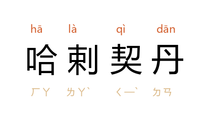 ⒈ 古族名兼古国名。也叫黑契丹(契丹语,哈剌为“黑”的意思)。指耶律大石所建的西辽。也用来专指契丹本族人。