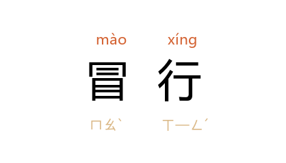 引宋 苏洵 《上韩昭文论山陵书》:“一金以上,非取於民则不获,而冒行不顾,以徇近世失中之礼,亦已惑矣。”宋 苏轼 《刑政》:“自 汉 以来,盐铁酒茗之禁,称贷榷易之利,皆心知其非而冒行之,故辞曲而民为盗。”