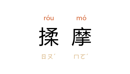 引《医宗金鉴·正骨心法要旨·颠顶骨》:“外用手法推按心胸两肋腋下腹上,并轻托内腕攒筋,频频揉摩。”茅盾 《追求》一:“她笑吟吟地伸直了身体,两只很白的手在胸前一上一下地揉摩。”