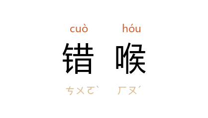 引唐 赵璘 《因话录·角》:“寧王 对御坐喷一口饭,直及龙颜。上曰:‘ 寧哥 何故错喉?’”唐 李德裕 《次柳氏旧闻》:“元宗 於诸昆季友爱弥篤……每与诸王同食,因食之次, 寧王 错喉,喷上髭。”